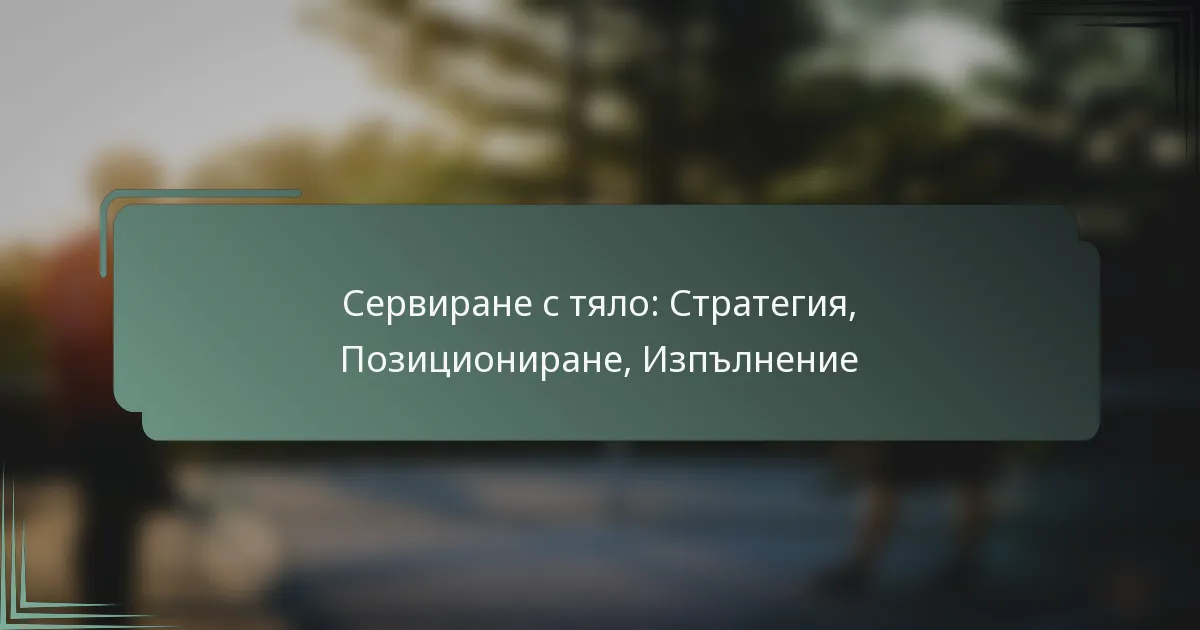 Сервисът в тялото е тактически тенис сервиз, насочен към тялото на противника, предназначен да наруши тяхната позиция и да направи връщанията предизвикателни. Чрез разбирането на стратегическите му предимства и анализирането на слабостите на противника, играчите могат ефективно да включат този сервиз в играта си. Правилното поставяне и изпълнение, включително корекции за стойка и използването на спин и скорост, са от съществено значение за максимизиране на въздействието му.