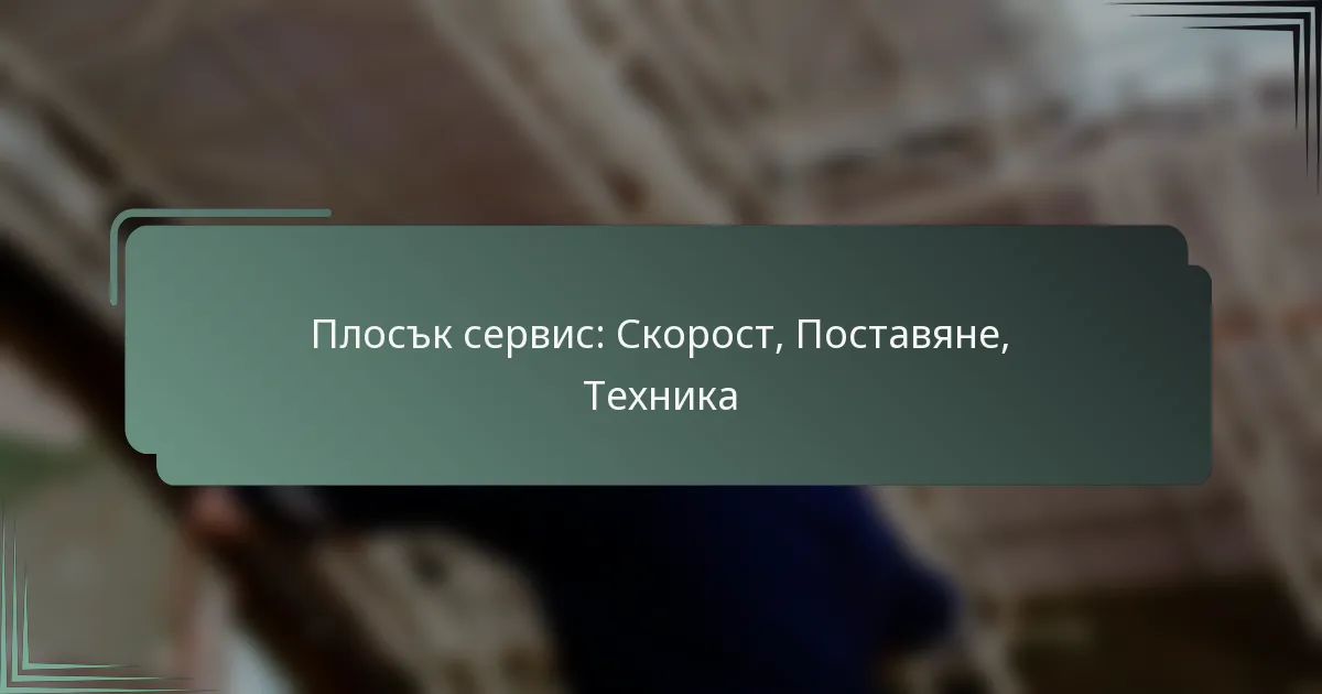 Плоският сервис е мощен тенис сервис, който акцентира на скоростта и директното поставяне с минимален спин. Овладяването на тази техника включва усъвършенстване на захвата, позиционирането на тялото и тайминга, за да се максимизира мощността и ефективността. Чрез стратегическо насочване към специфични области на корта, играчите могат да експлоатират слабостите на противника си и да увеличат шансовете си за спечелване на точки.
